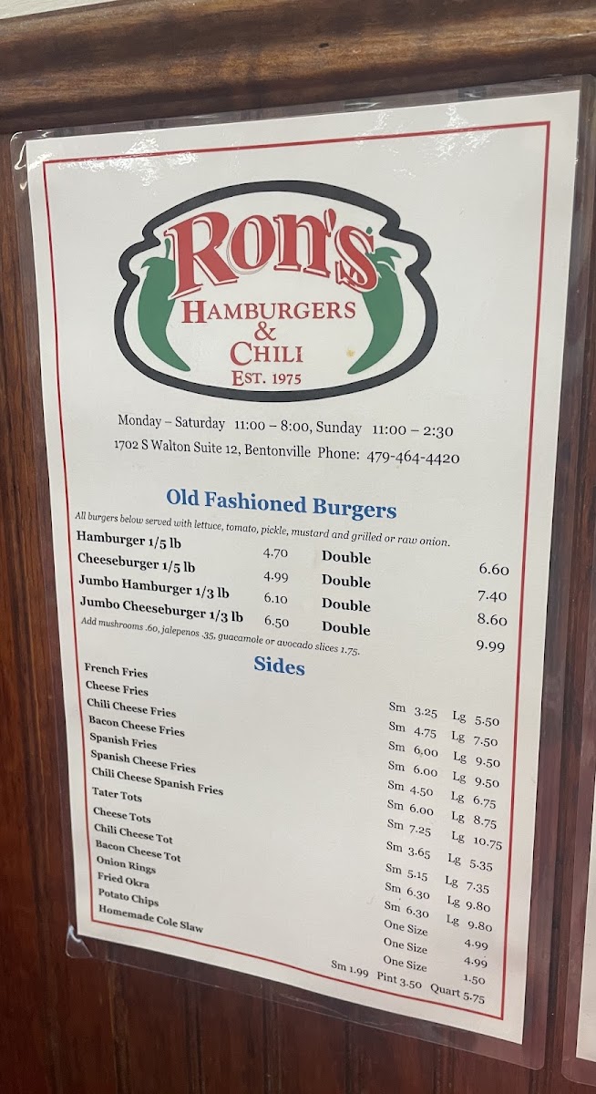 Welcome to Ron's Hamburgers & Chili, a must-visit gem located at 1702 S Walton Blvd in Bentonville, AR. This establishment has become a beloved spot for locals and visitors alike, renowned for its mouthwatering offerings. The menu features a variety of delicious burgers, with the standout being the chili cheeseburger, a crowd favorite that comes piled high with robust chili and cheese.